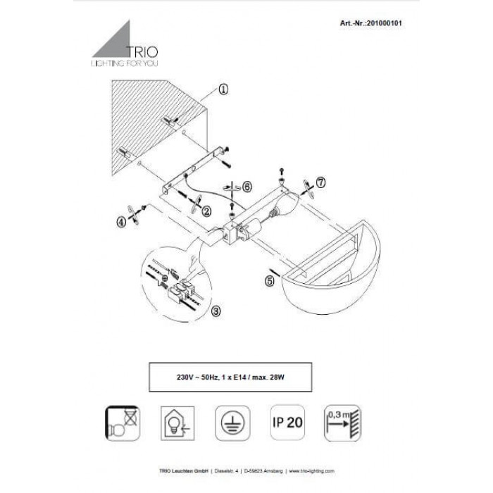Теги: Бра і Настінні світильники, Trio, E14, гіпс, гіпс, ні, білий