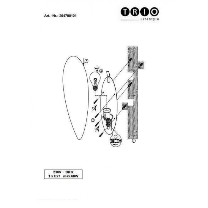 Теги: Бра і Настінні світильники, Trio, E27, метал, скло, ні, білий