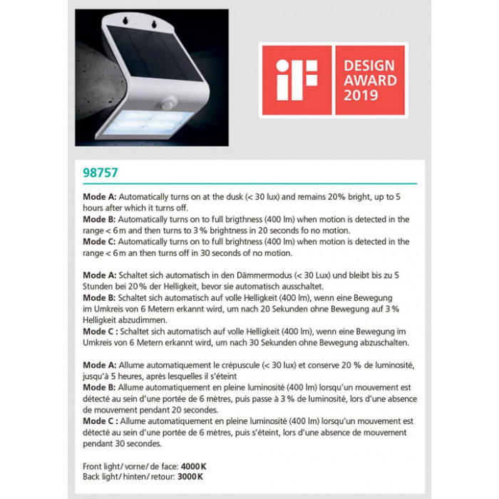 В нашому інтернет супермаркеті кращого освітлення з Європи та України Electroled.com.ua ви можете купити Eglo LAMOZZO 98757 від торгової марки Eglo.