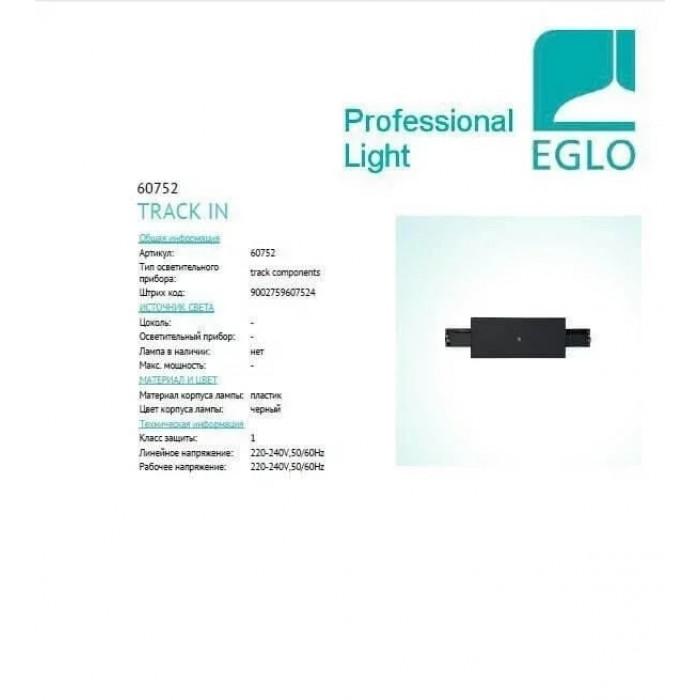 Теги: Компоненти трекових систем, Eglo, пластик, Конектори для шини