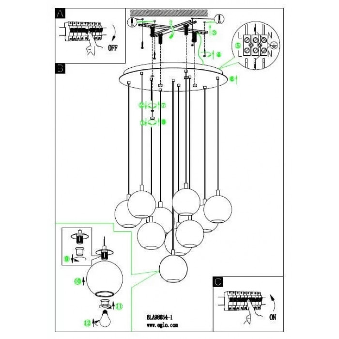 В нашому інтернет супермаркеті кращого освітлення з Європи та України Electroled.com.ua ви можете купити Люстра Eglo ARISCANI 98654 від торгової марки Eglo.