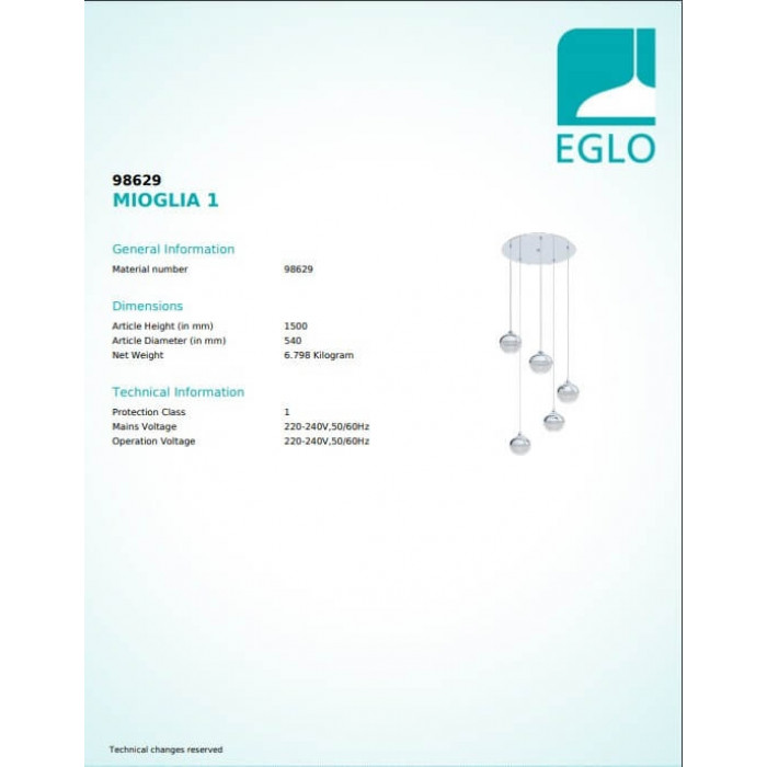 В нашому інтернет супермаркеті кращого освітлення з Європи та України Electroled.com.ua ви можете купити Люстра Eglo MIOGLIA 1 98629 від торгової марки Eglo.