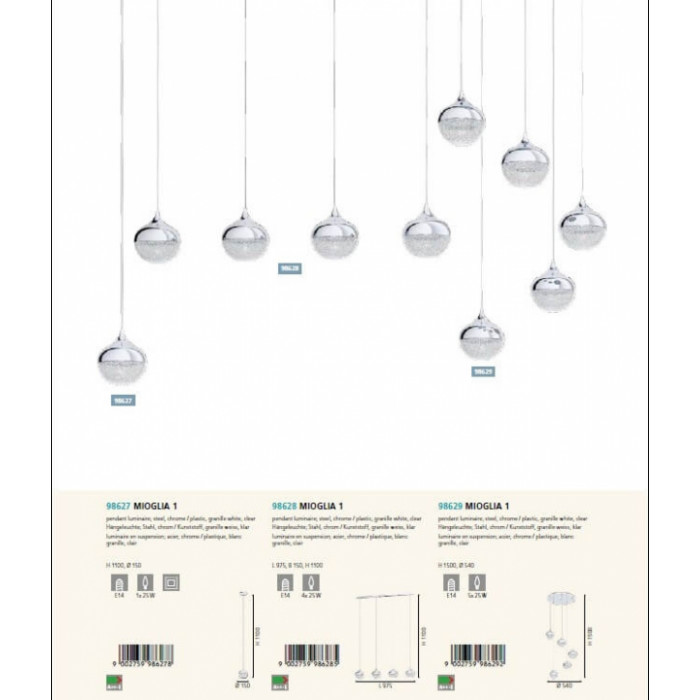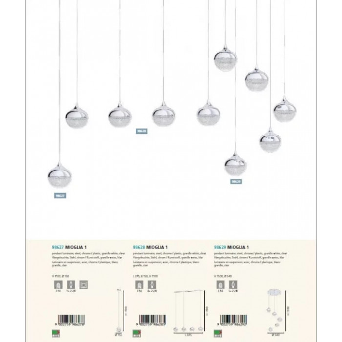 Теги: Підвісні світильники, Eglo, E14, метал, пластик, ні, хром