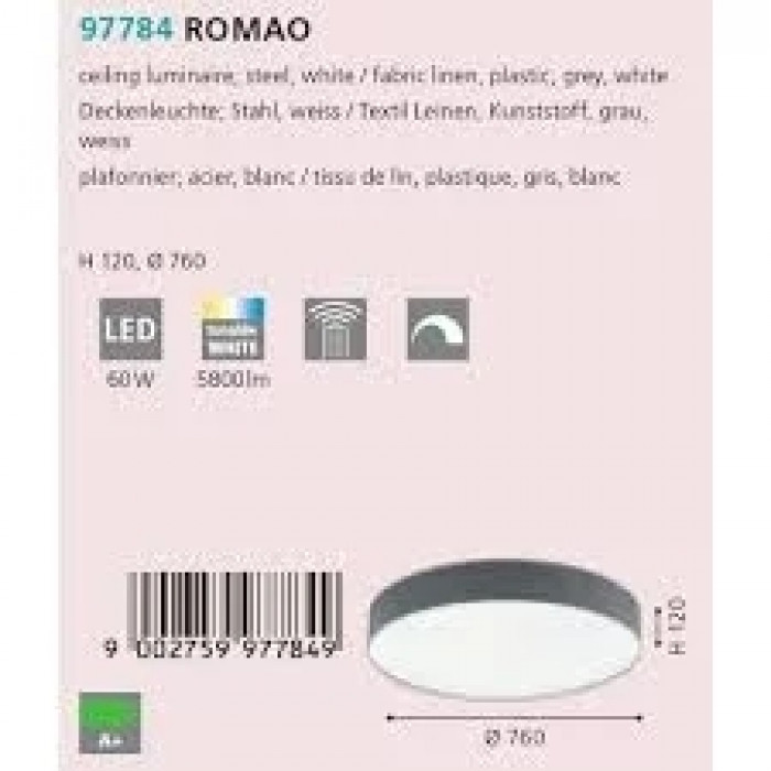 Теги: Брендові люстри, Eglo, 3000-5000, модуль LED, метал, текстіль, так, сірий і відтінки