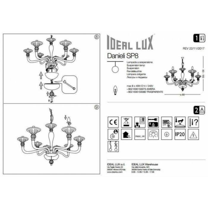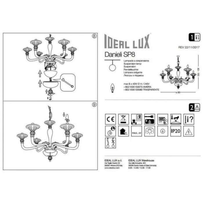 В даній категорії - Брендові люстри - наша компанія Electroled.com.ua представляє Ideal Lux. Такий світловий прилад - Люстра Ideal Lux DANIELI 159973 цікаво доповнить ваш дизайнерський інтер'єр.