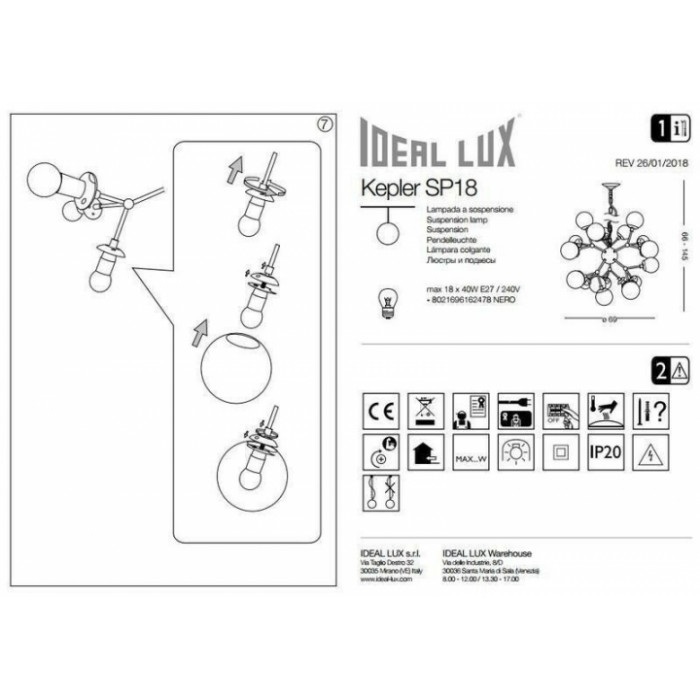 В нашому інтернет супермаркеті кращого освітлення з Європи та України Electroled.com.ua ви можете купити Люстра Ideal Lux KEPLER 162478 від торгової марки Ideal Lux.