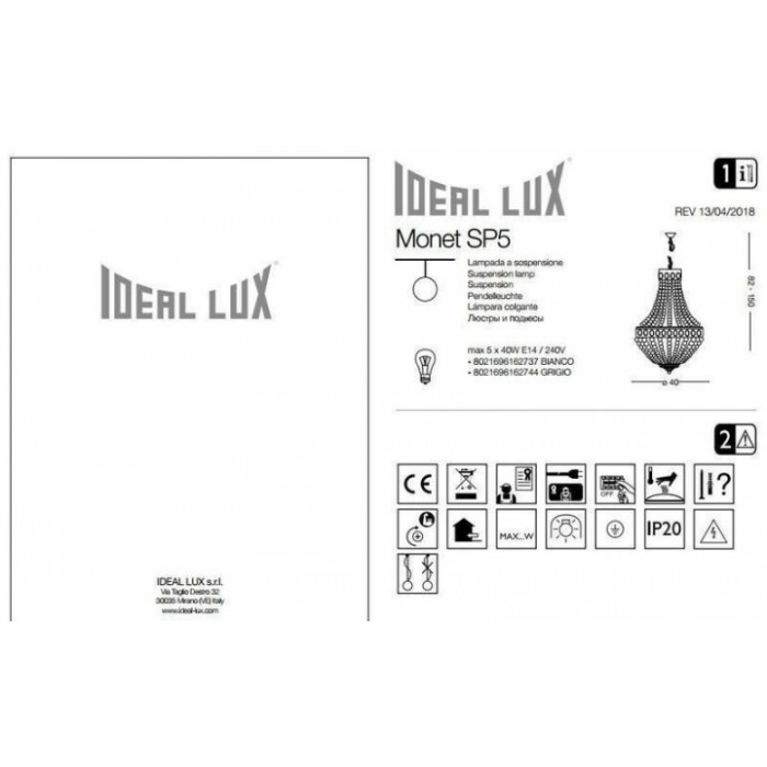 В нашому інтернет супермаркеті кращого освітлення з Європи та України Electroled.com.ua ви можете купити Люстра Ideal Lux MONET 162737 від торгової марки Ideal Lux.
