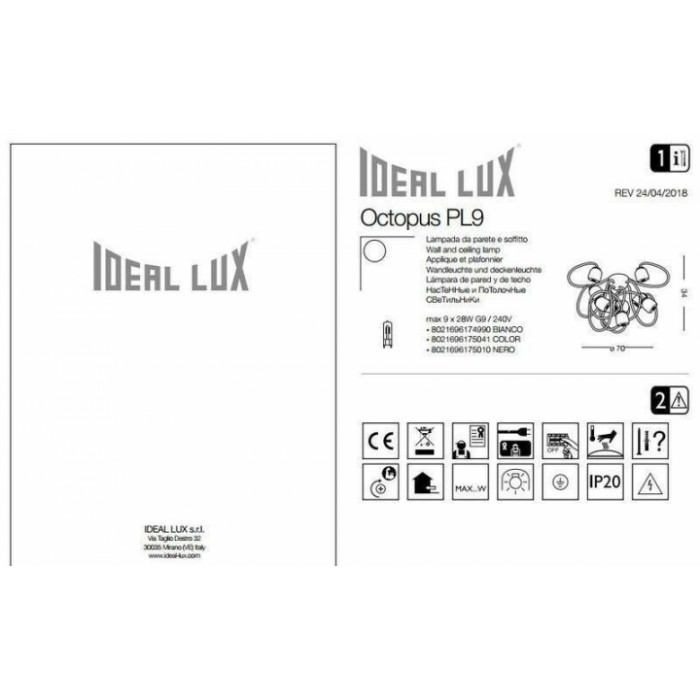 В нашому інтернет супермаркеті кращого освітлення з Європи та України Electroled.com.ua ви можете купити Люстра Ideal Lux OCTOPUS 175010 від торгової марки Ideal Lux.