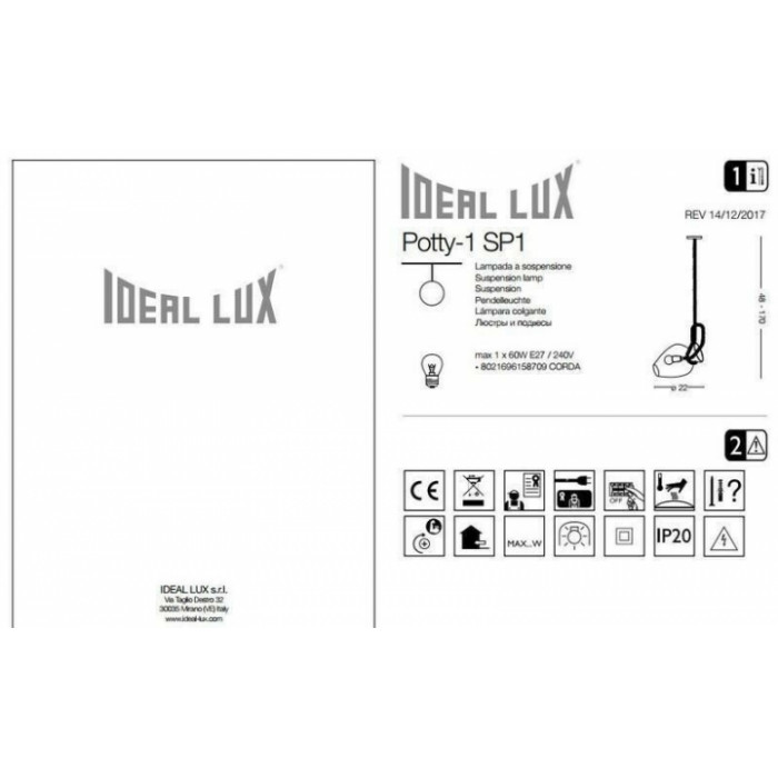 В нашому інтернет супермаркеті кращого освітлення з Європи та України Electroled.com.ua ви можете купити Люстра Ideal Lux POTTY 158709 від торгової марки Ideal Lux.