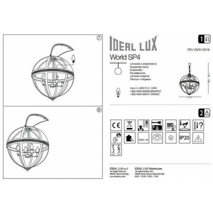 В нашому інтернет супермаркеті кращого освітлення з Європи та України Electroled.com.ua ви можете купити Люстра Ideal Lux WORLD 156330 від торгової марки Ideal Lux.