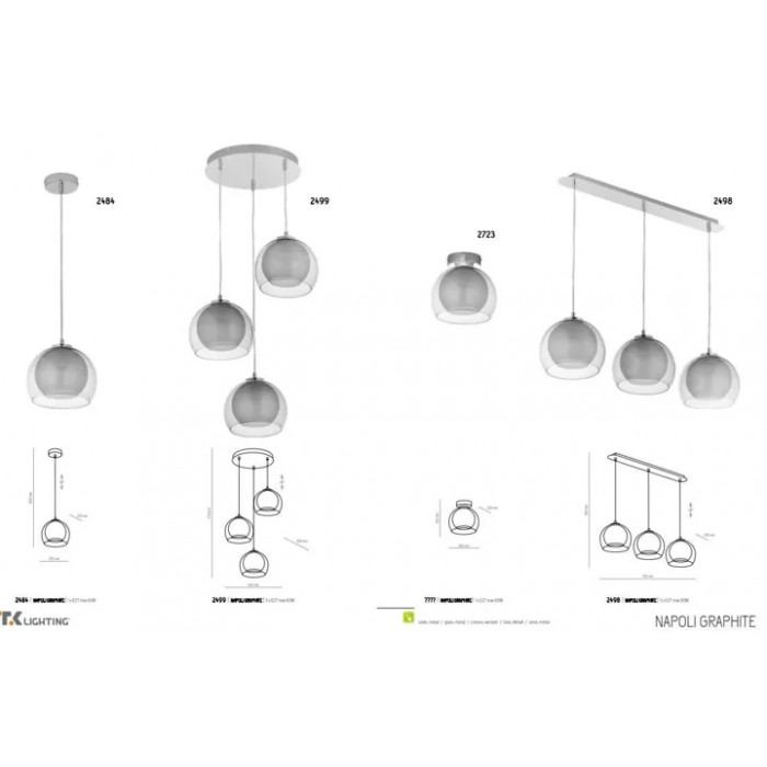 В даній категорії - Підвісні світильники - наша компанія Electroled.com.ua представляє TK Lighting. Такий світловий прилад - Люстра TK Lighting NAPOLI GRAPHITE 2499 цікаво доповнить ваш дизайнерський інтер'єр.