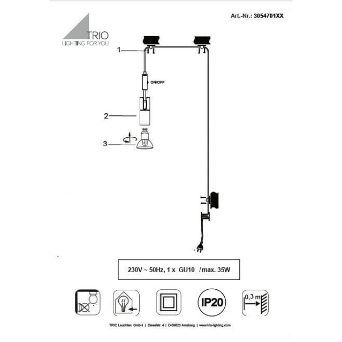 В даній категорії - Підвісні світильники - наша компанія Electroled.com.ua представляє Trio. Такий освітлювальний прилад - Люстра TRIO CARLA 305470131 цікаво доповнить ваш дизайнерський інтер'єр.