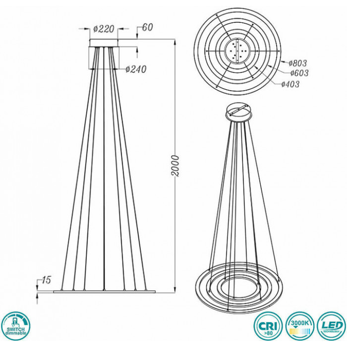 Теги: Підвісні світильники, Trio, модуль LED, метал, акрил, так, білий