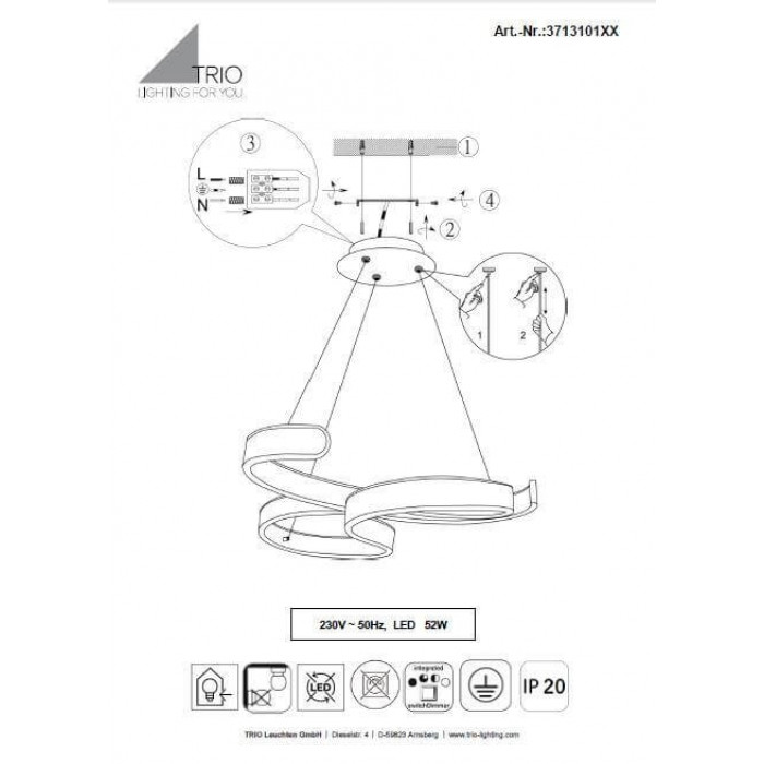 В даній категорії - Підвісні світильники - наша компанія Electroled.com.ua представляє Trio. Такий світловий прилад - Люстра TRIO FRANCIS 371310142 цікаво доповнить ваш дизайнерський інтер'єр.