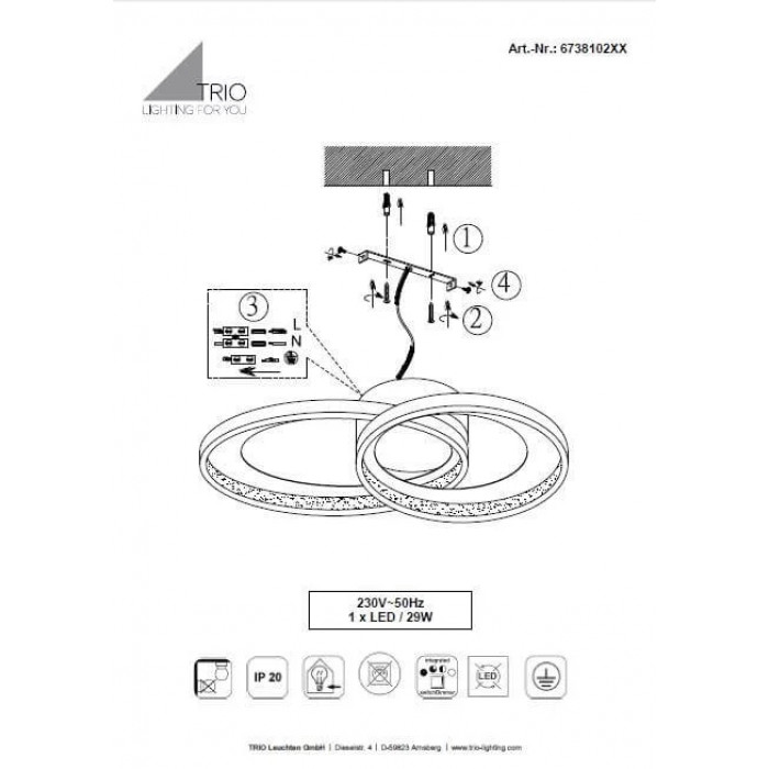 Теги: Брендові люстри, Trio, модуль LED, метал, так