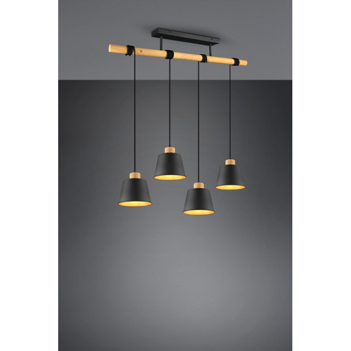 Теги: Підвісні світильники, Trio, E27, дерево, метал, ні, золото