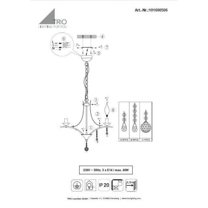 В нашому інтернет супермаркеті кращого освітлення з Європи та України Electroled.com.ua ви можете купити Люстра TRIO LUCERNA 101600506 від торгової марки Trio.