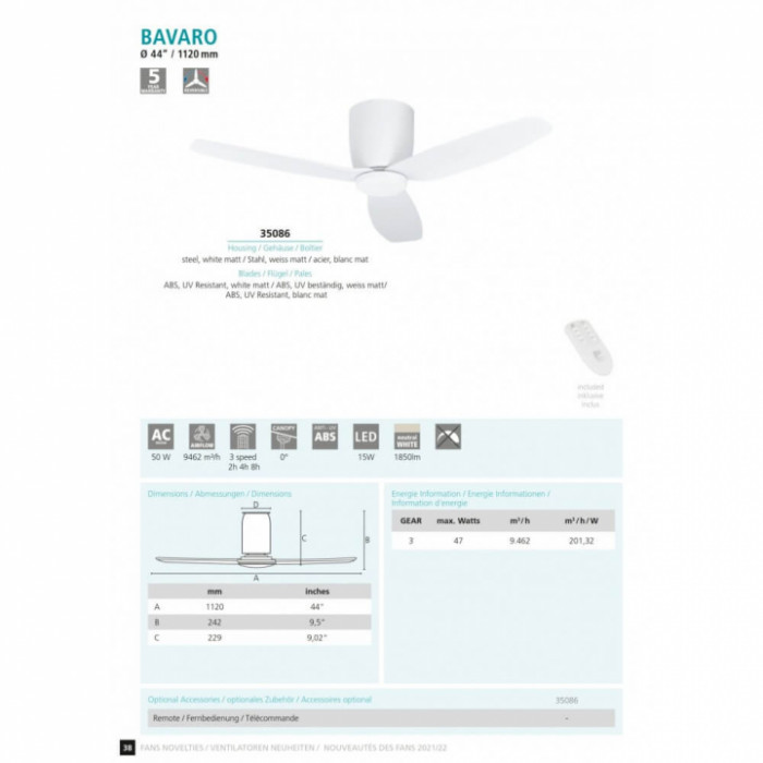 В нашому інтернет супермаркеті кращого освітлення з Європи та України Electroled.com.ua ви можете купити Люстра-вентилятор Eglo BAVARO 35086 від торгової марки Eglo.