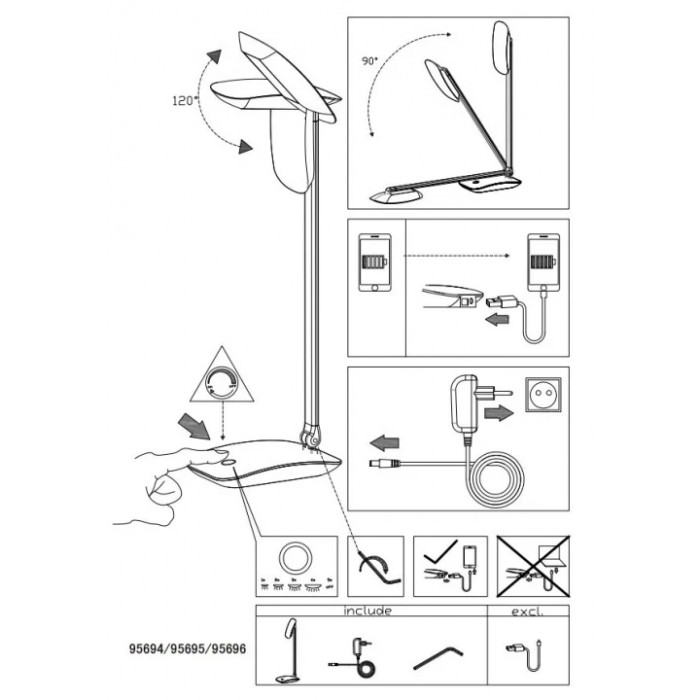Теги: Настільні лампи та нічники, Eglo, модуль LED, пластик, пластик, так, срібло