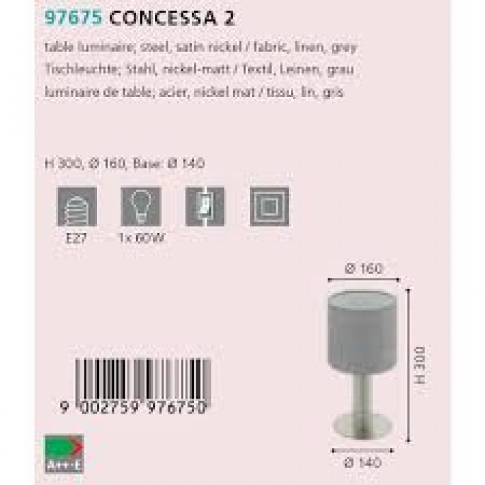 В нашому інтернет супермаркеті кращого освітлення з Європи та України Electroled.com.ua ви можете купити Настільна лампа Eglo Concessa 2 97675 від торгової марки Eglo.