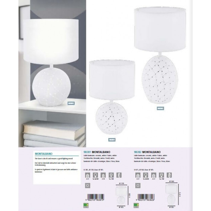 В нашому інтернет супермаркеті кращого освітлення з Європи та України Electroled.com.ua ви можете купити Настільна лампа Eglo MONTALBANO 98381 від торгової марки Eglo.