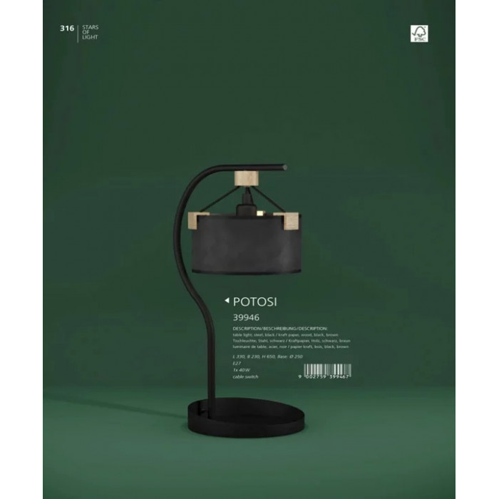 В нашому інтернет супермаркеті кращого освітлення з Європи та України Electroled.com.ua ви можете купити Настільна лампа Eglo POTOSI 39946 від торгової марки Eglo.