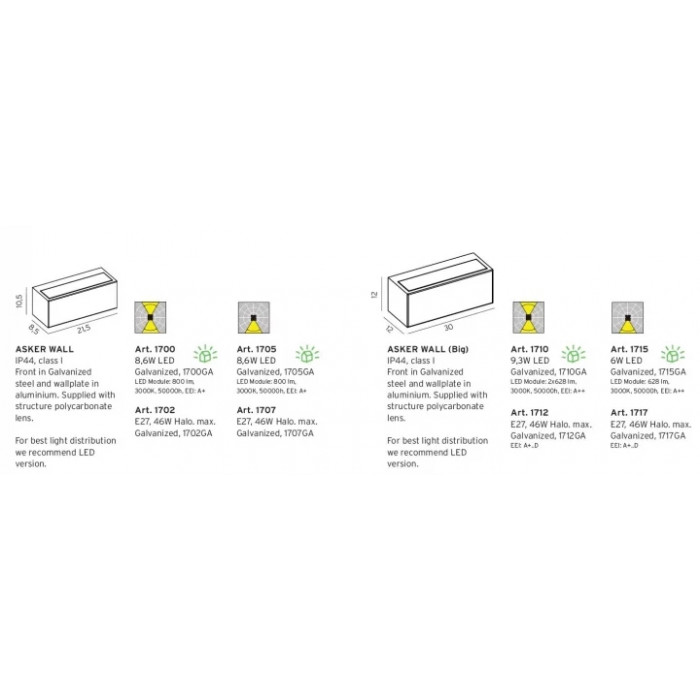 В даній категорії - Фасадні світильники - наша компанія Electroled.com.ua представляє Norlys. Такий світильник - Norlys ASKER 1700GA цікаво доповнить ваш дизайнерський інтер'єр.