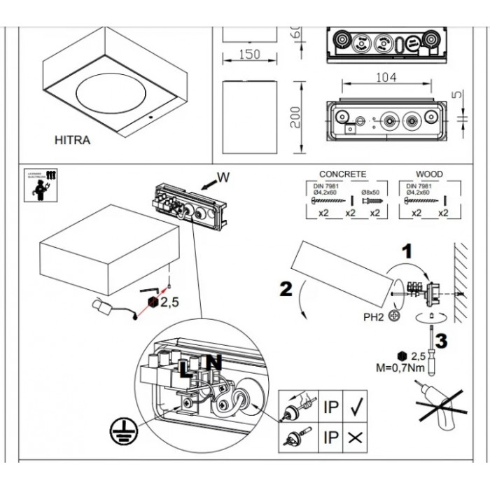 ➙ Ступінь захисту: IP44