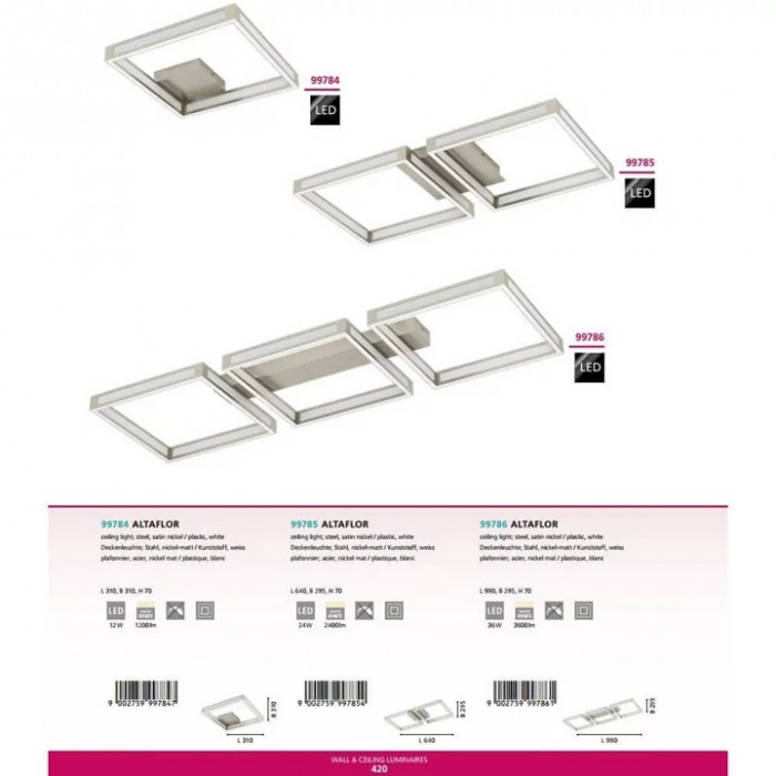 В нашому інтернет супермаркеті кращого освітлення з Європи та України Electroled.com.ua ви можете купити Стельовий світильник Eglo ALTAFLOR 99784 від торгової марки Eglo.