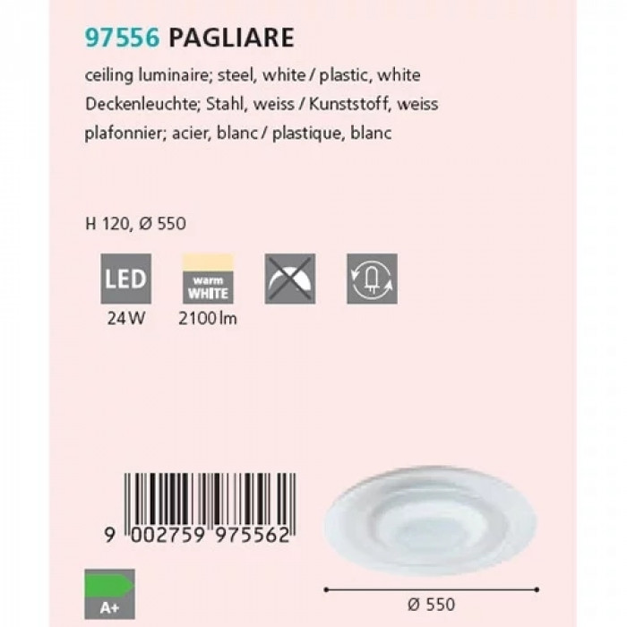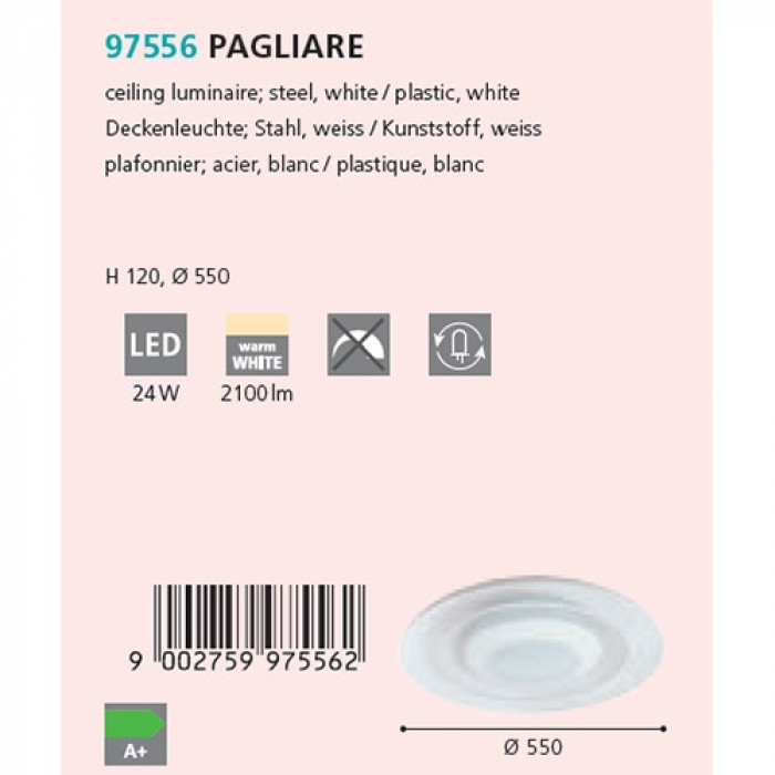 В нашому інтернет супермаркеті кращого освітлення з Європи та України Electroled.com.ua ви можете купити Стельовий світильник Eglo PAGLIARE 97556 від торгової марки Eglo.