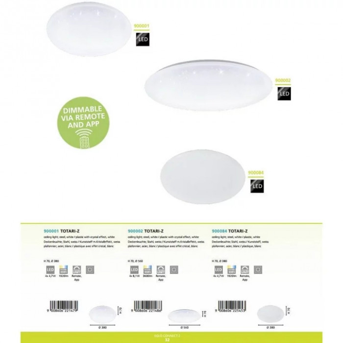 В нашому інтернет супермаркеті кращого освітлення з Європи та України Electroled.com.ua ви можете купити Стельовий світильник Eglo TOTARI-Z 900084 від торгової марки Eglo.