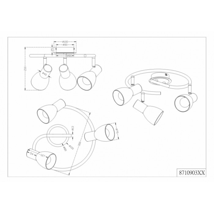 Теги: Накладні точкові світильники, Trio, E14, метал, скло, так, білий