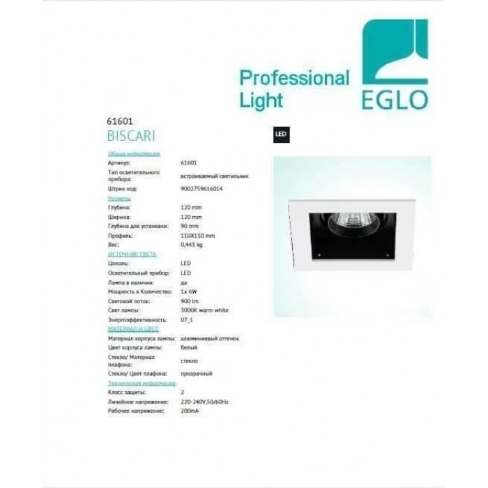 В нашому інтернет супермаркеті кращого освітлення з Європи та України Electroled.com.ua ви можете купити Точковий світильник Eglo BISCARI 61601 від торгової марки Eglo.