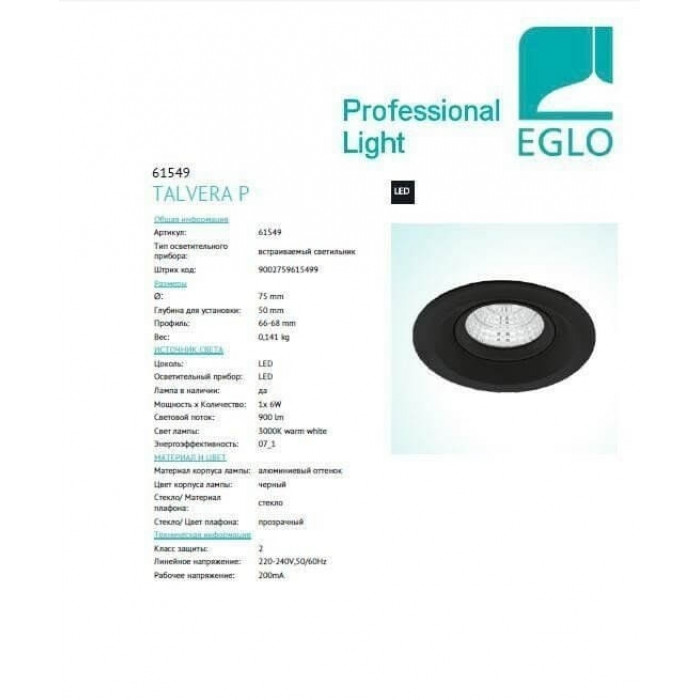В нашому інтернет супермаркеті кращого освітлення з Європи та України Electroled.com.ua ви можете купити Точковий світильник Eglo TALVERA P 61549 від торгової марки Eglo.