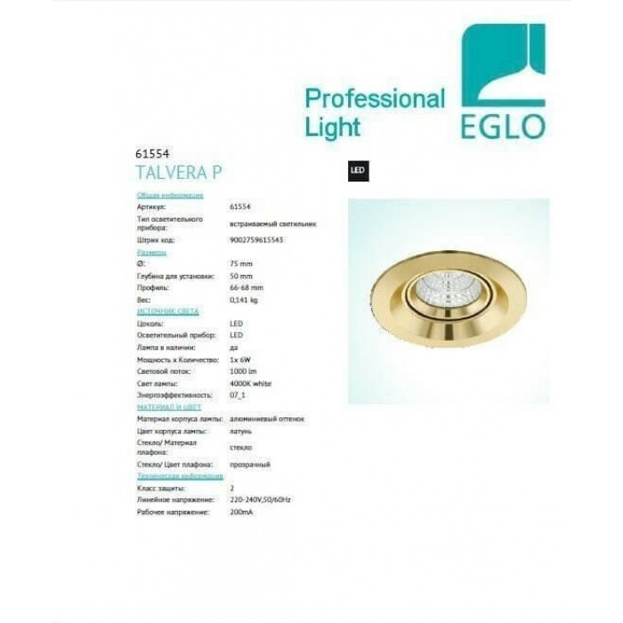 В нашому інтернет супермаркеті кращого освітлення з Європи та України Electroled.com.ua ви можете купити Точковий світильник Eglo TALVERA P 61554 від торгової марки Eglo.