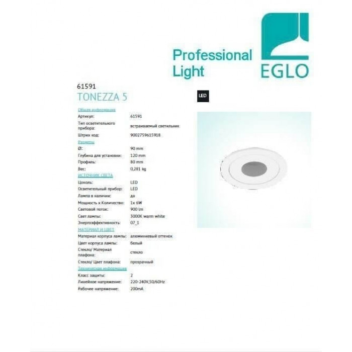 Теги: Вбудовані точокві світильники, Eglo, модуль LED, метал, так