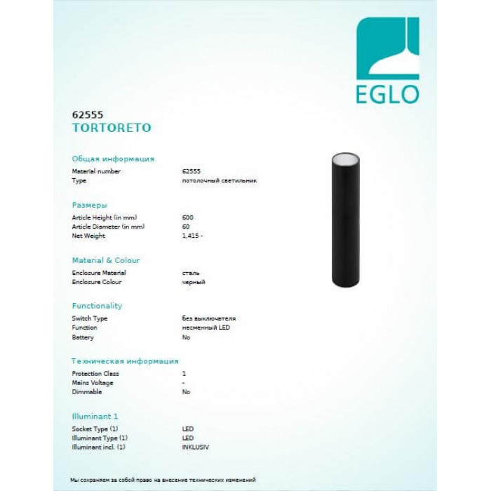В нашому інтернет супермаркеті кращого освітлення з Європи та України Electroled.com.ua ви можете купити Точковий світильник Eglo TORTORETO 62555 від торгової марки Eglo.