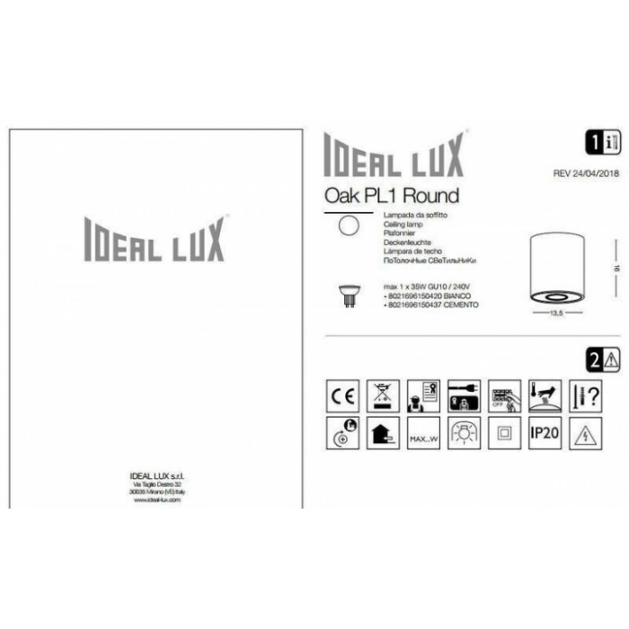 В нашому інтернет супермаркеті кращого освітлення з Європи та України Electroled.com.ua ви можете купити Точковий світильник Ideal Lux OAK 150437 від торгової марки Ideal Lux.