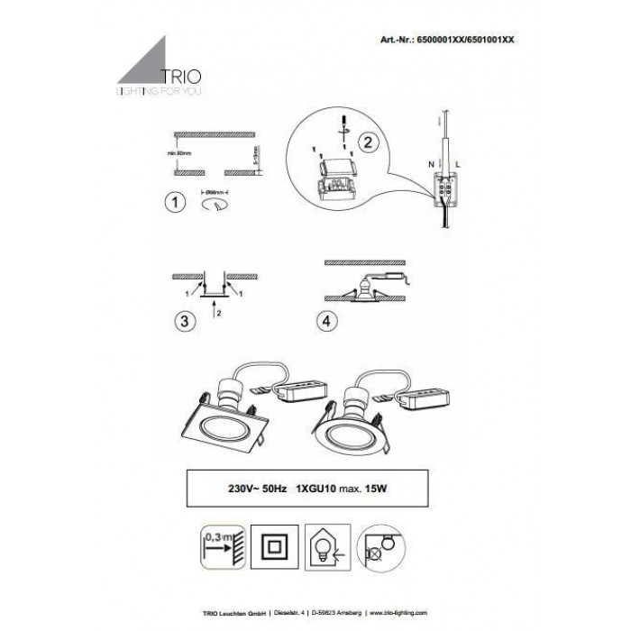 Теги: Вбудовані точокві світильники, Trio, GU10, метал, ні