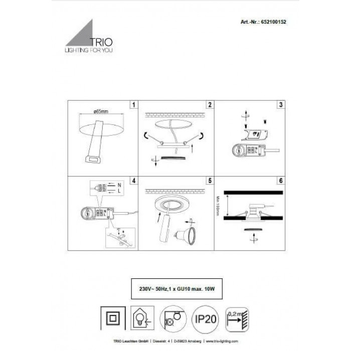 Теги: Вбудовані точокві світильники, Trio, 6.5, метал, ні