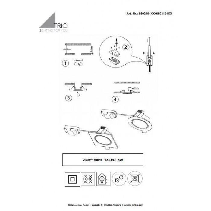 Теги: Вбудовані точокві світильники, Trio, модуль LED, метал, так