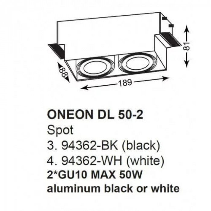В нашому інтернет супермаркеті кращого освітлення з Європи та України Electroled.com.ua ви можете купити Точковий світильник Zuma Line ONEON DL 50-2 94362-BK від торгової марки Zuma Line.