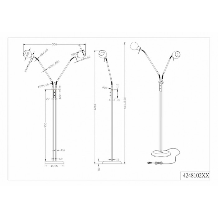 В даній категорії - Торшери - наша компанія Electroled.com.ua представляє Trio. Такий світловий прилад - Торшер TRIO FREDDY 424810207 цікаво доповнить ваш дизайнерський інтер'єр.